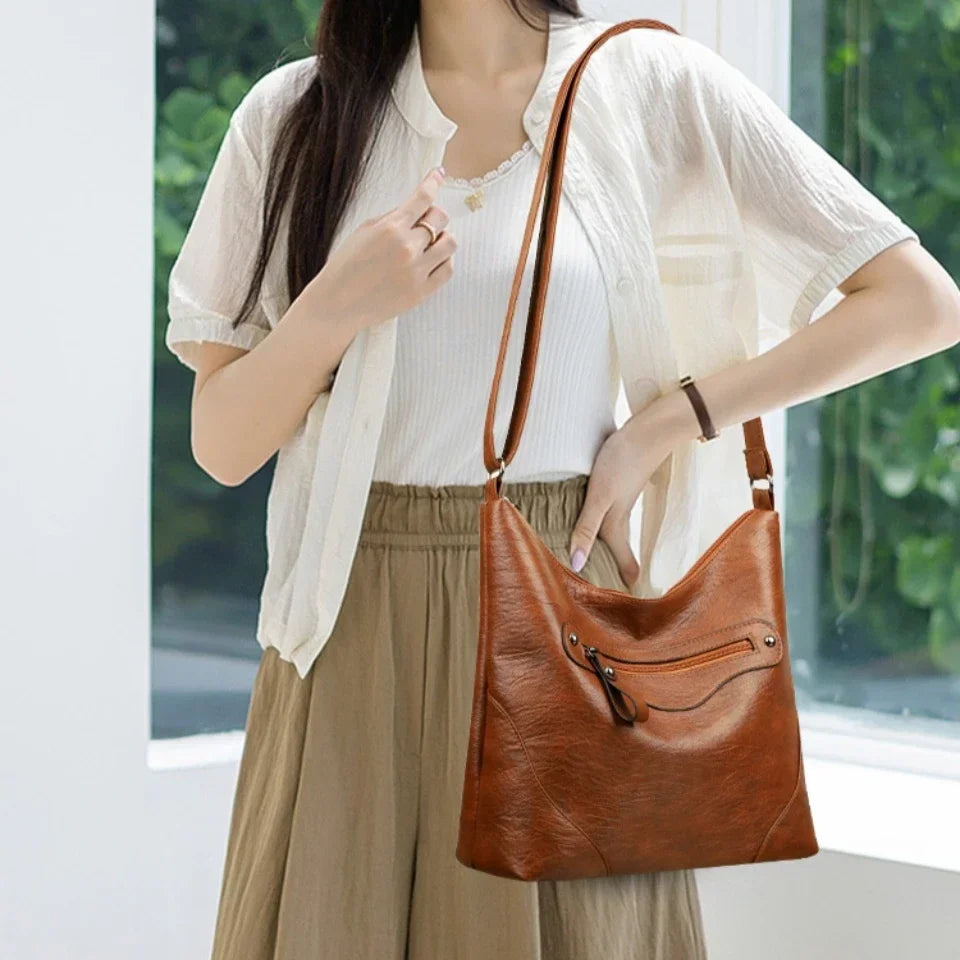 Bolsas Faux Leather Crossbody Messenger Bag is lined with slots and compartments for you to store all your essentials.
