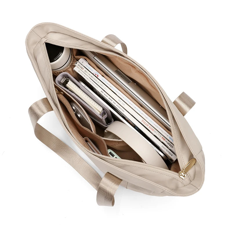 This laptop tote bag is designed for women who need to carry their laptop with them when they're on the go. It's made of durable, water-resistant materials and the bag is large enough to securely store a laptop up to 15 inches in size. It also has multiple pockets and compartments to help keep your items organized.