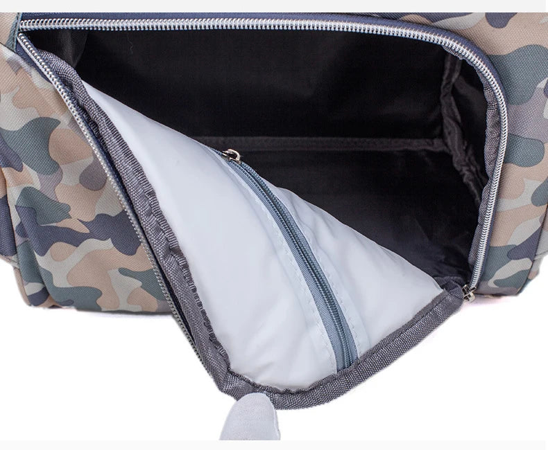 This baby bag is loaded with all of the essential pockets, including three insulated bottle pockets; a discreet back pocket for phones, credit cards, and a small pocket specifically designed for wet clothes.