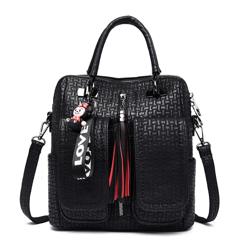Looking for a classy black leather backpack? This convertible backpack purse is for you. Smart, compact, and full of handy pouches and compartments, this chic backpack is a must-have in your wardrobe.